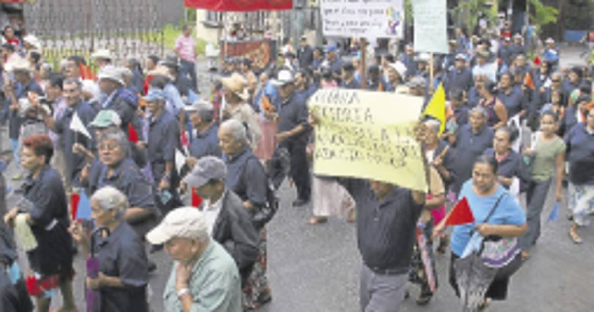 La lluvia no fue obstáculo para que alrededor de dos mil adultos mayores de diferentes sectores de Choloma llevaron a cabo una marcha para exigir a las autoridades el respeto y cumplimiento de sus derechos.