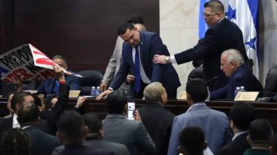 Al momento que el secretario del Legislativo, Tomás Zambrano, procedía a dar lectura a los documentos, un grupo de diputados de Libre se abalanzaron frente a la mesa principal y empezaron a vociferar y a efectuar sus violentas y acostumbradas protestas, exigiendo la no aprobación de ambas iniciativas.