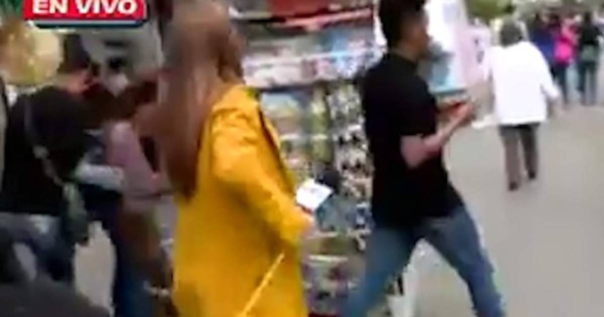 En las imágenes se aprecia a una pareja de jovencitos que se acercan a la reportera mientras esta entrevistaba a una mujer en una calle peatonal de Tegucigalpa.