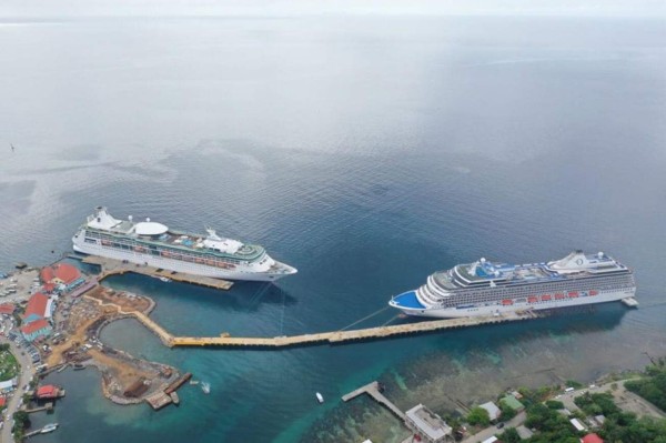 En el Puerto de Roatán ya pueden atracar dos cruceros a la vez, luego de la construcción del segundo muelle por parte de la compañía Royal Caribbean.