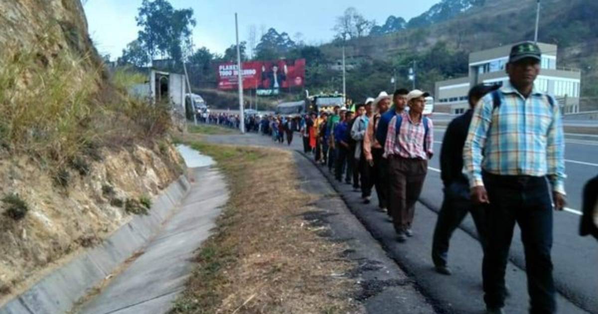Los campesinos salieron caminando el lunes en la mañana de San Francisco de Opalaca y llegaron hoy a la capital, donde protestan frente a Casa Presidencial.