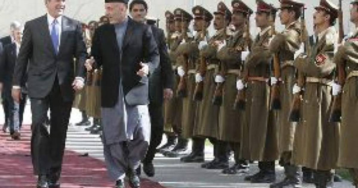 Bush aterrizó en la base estadounidense de Bagram y se ha reunido con el presidente afgano, Hamid Karzai, para mostrarle su apoyo y con militares estadounidenses allí desplegados.Actualmente, y dentro de la operación Libertad Duradera, hay unos 19 mil soldados de EUA.