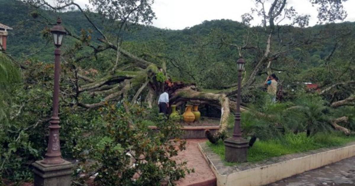 El árbol estaba ubicado en el parque central del pueblo y cedió por las lluvias de los ùltimos días.