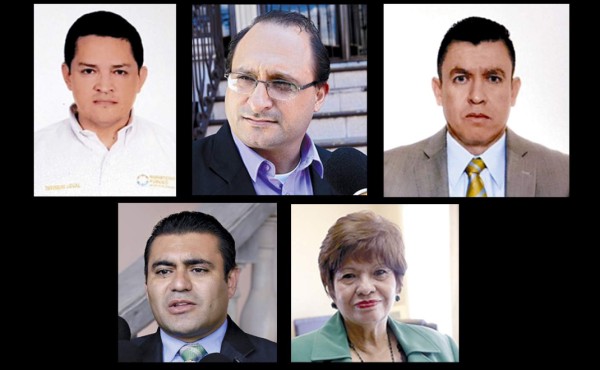 Estos son Abraham Alvarenga, actual procurador general del Estado; Carlos Roberto Cálix, jefe de personal del Poder Judicial; Daniel Arturo Sibrián, jefe de la División Legal del Ministerio Público, y Hermes Omar Moncada, asistente del presidente de la CSJ.