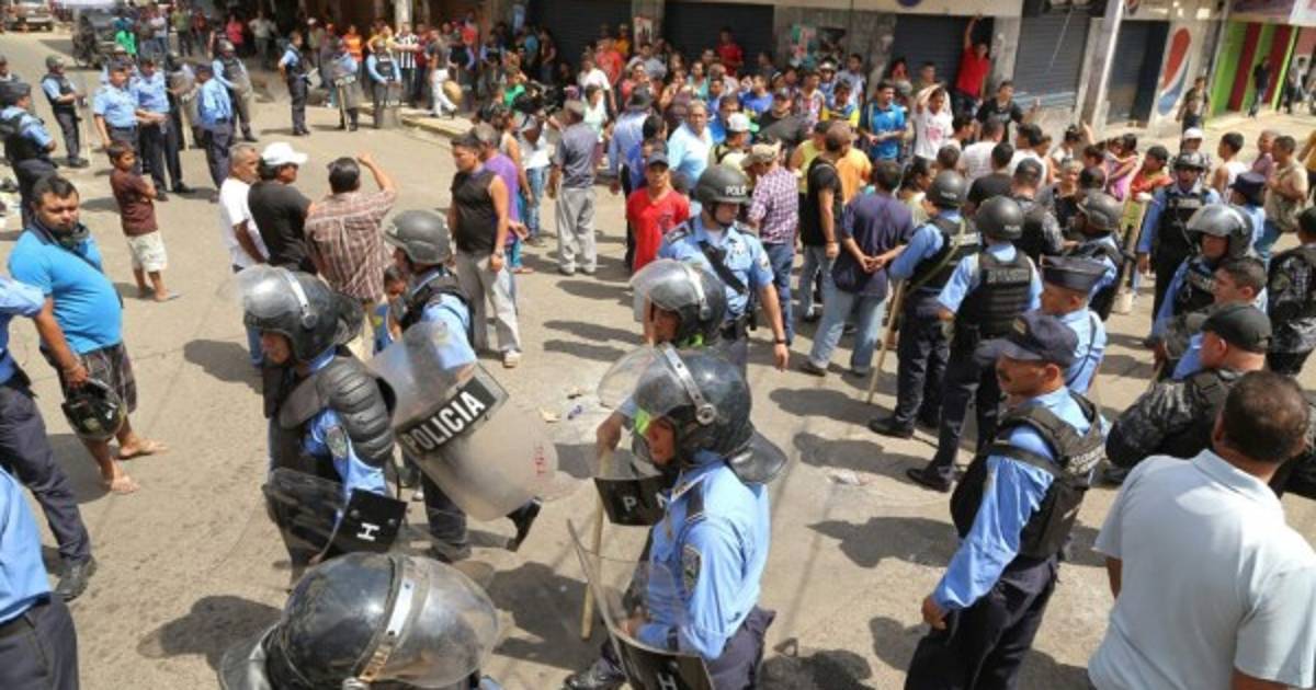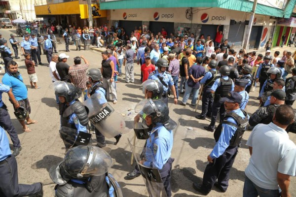 Vendedores ambulantes se tomaron el centro de San Pedro Sula en protesta porque en la madrugada fueron desalojados de la 6 y 7 calles suroeste y 2 avenidas por la Policía Municipal.