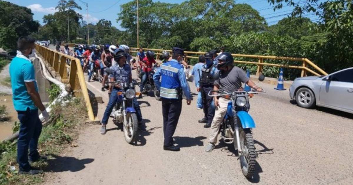 Centenares de ceibeños han desobedecido el toque de queda tratando de circular por la carretera CA-13 en La Ceiba, Atlántida.
