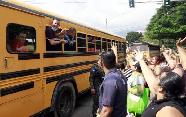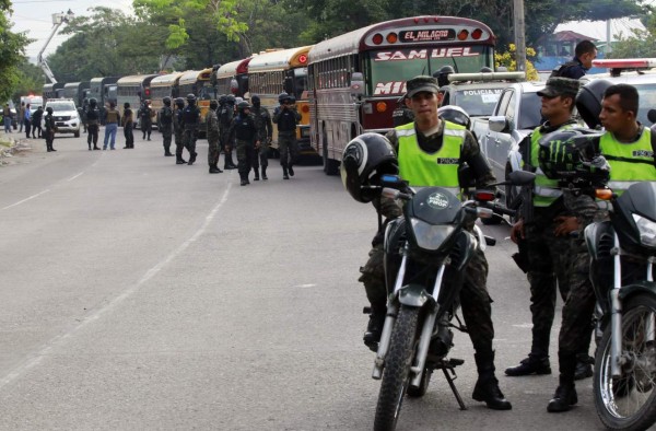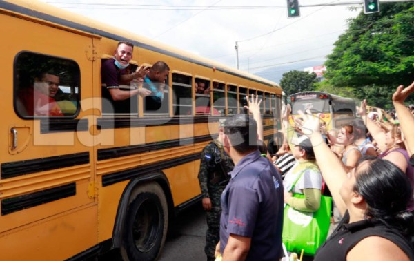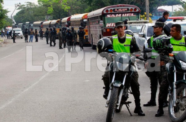 Los buses custodiados por miembros de la Policía Militar y la Policía Nacional comenzaron a salir a las 5:45 am con rumbo a El Porvenir, culminando los traslados a las 9:40 am con los que iban para El Progreso.
