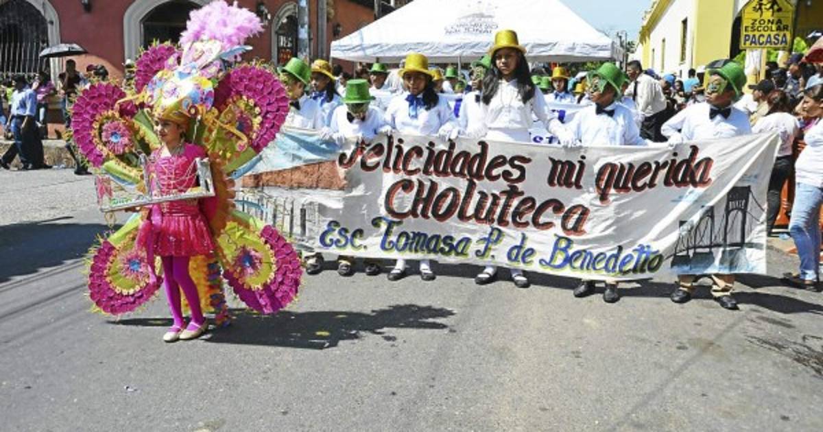 Los estudiantes de Choluteca en el desfile de aniversario.