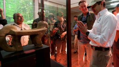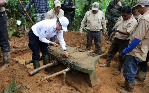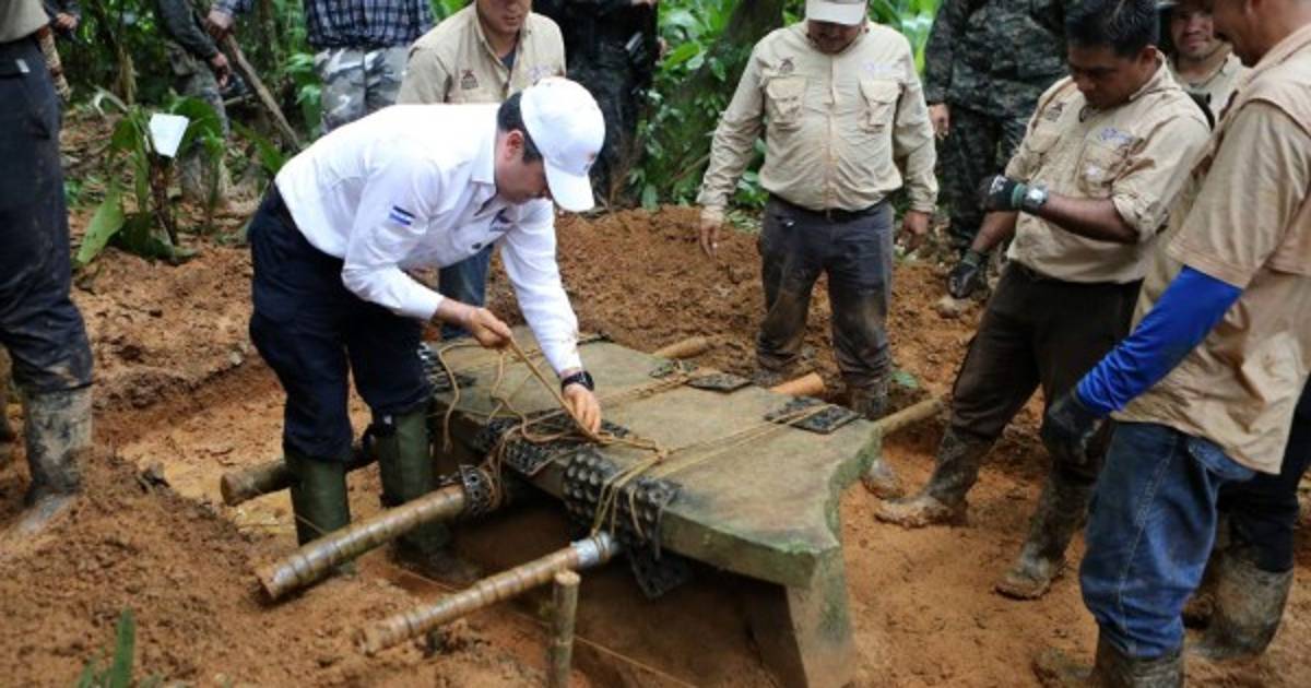 El gobernante acompañó a un equipo de arqueólogos que extrajo la pieza de más de un metro de largo y medio de ancho hallada en Kaha Kamasa, Ciudad Blanca en dialecto misquito, de la que se viene hablando en Honduras desde hace varias décadas, pero poco se había informado a fondo.
