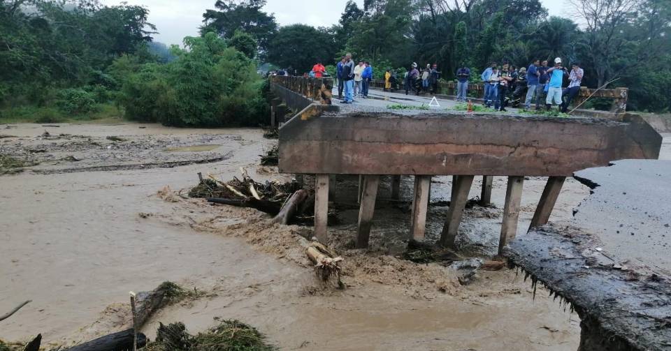 Las copiosas precipitaciones provocaron que una parte del puente sobre el río Sarnia, ubicado en la comunidad de San Francisco, colapsara por la fuerte corriente del afluente que cruza por la zona.