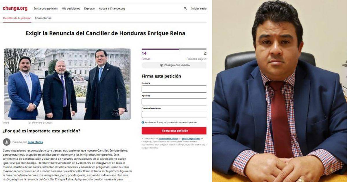 A través de la plataforma change.org, Flores lanzó una petición dirigida a los hondureños para exigir la renuncia del canciller. En la publicación expresó: “Nos duele ver que nuestro Canciller parece estar más ocupado en política que en defender a los inmigrantes hondureños. Este sentimiento de desprotección y abandono no puede ignorarse por más tiempo.”