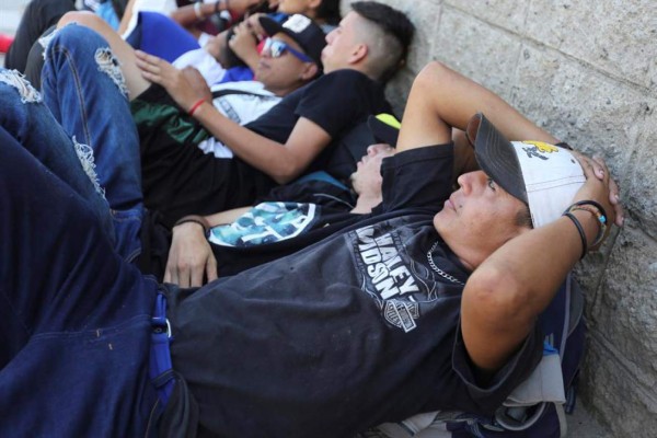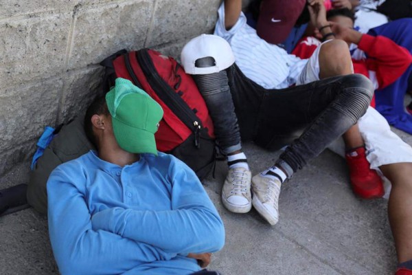 Varios hondureños descansan previo a emprender el viaje hacia EEUU.