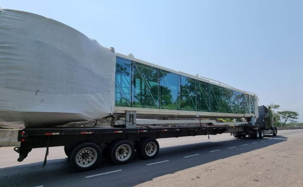 Las siete modernas puertas de embarque que conectarán la terminal de pasajeros del Aeropuerto Internacional de Palmerola con los aviones comenzaron a trasladarse este día desde Puerto Cortés hacia la terminal aérea ubicada en Comayagua para su instalación.