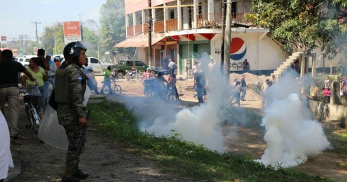 Con bombas lacrimógenas desalojaron la mañana de este martes a los manifestantes que mantenían tomada la carretera que de El Progreso, Yoro, conduce hacia Tela, Atlántida.