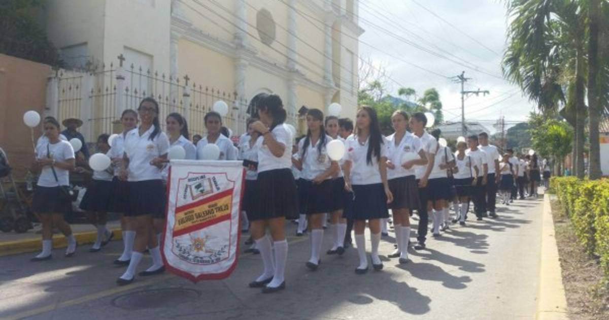 Estudiantes de 20 institutos educativos, acompañados por la sociedad civil y agentes militares, salieron este viernes a las calles para clamar por la paz en suelos de Santa Bárbara, zona occidental de Honduras.