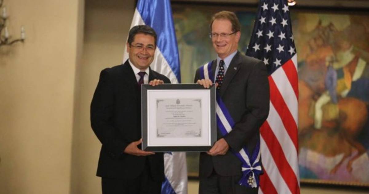 El nortemericano fue premiado con la Orden de Francisco Morazán en el Grado de Gran Cruz Placa de Plata por el presidente hondureño Juan Orlando Hernández Alvarado.