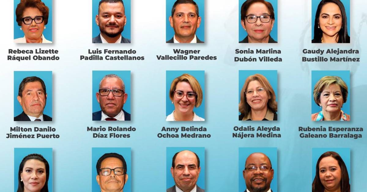 Los magistrados son Sonia Marlina Dubón, Roy Pineda, Mario Díaz, Francisca Villela, Rubenia Galeano y Rebeca Obando, por el Partido Libre; Gaudy Bustillo, Anny Belinda Ochoa, Isbela Bustillo, Walter Miranda y Luis Fernando Padilla, del Partido Nacional; y Odalys Nájera, Milton Jiménez, Wagner Vallecillo y Nelson Danilo Mairena, por el Partido Liberal.