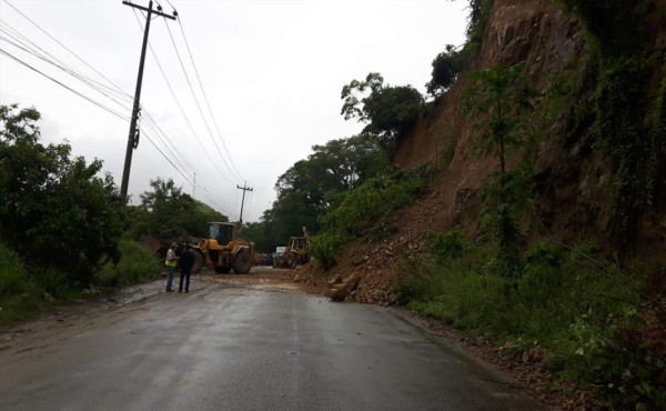 También se trabaja en restablecer el paso en los dos carriles que han sido interrumpidos por los escombros de derrumbes de gran magnitud en de la carretera CA-4 - Chamelecón - límite departamental de Cortés y Santa Bárbara.