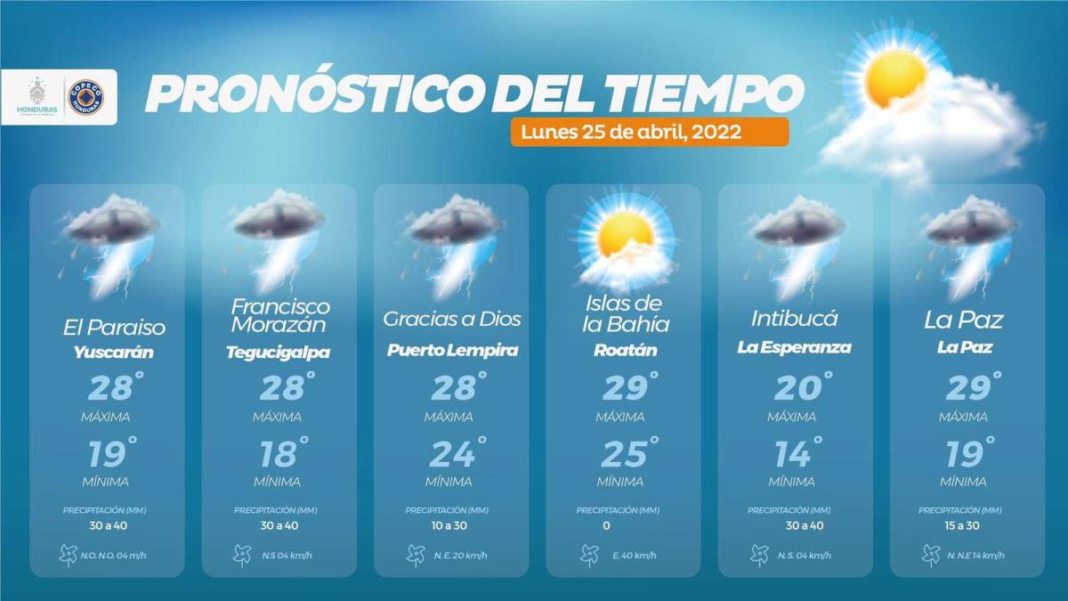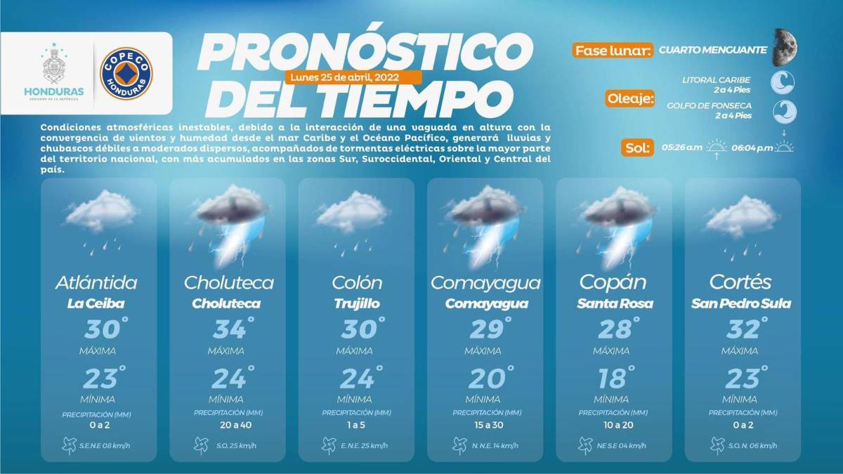 La Comisión Permanente de Contingencias (Copeco), a través del Centro de Estudios Atmosféricos, Oceanográficos y Sísmicos (Cenaos), informó este lunes 25 de abril que continuarán las condiciones inestables del clima en la mayoría de regiones de Honduras.