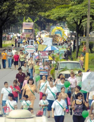 A las 8.30 am del domingo salió una procesión desde la entrada de la colonia Juan Ramón Molina, donde cada colonia y aldea llevó una carroza con su respectivo santo patrono y llegaron hasta el gimnasio del instituto Primero de Mayo.