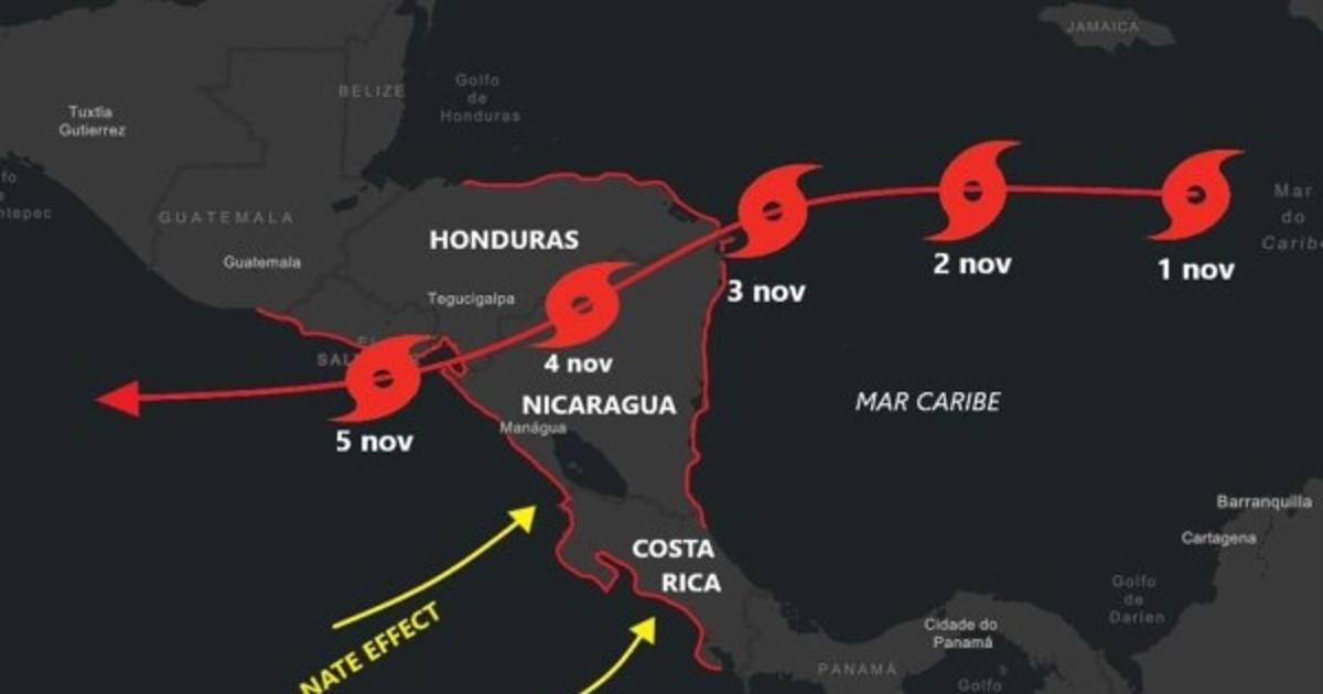 Lo anterior dejaría acumulaciones de superiores a los 100 milímetros diarios. La trayectoria de este posible ciclón, hasta el lunes 2 de noviembre, es que se trasladaría desde el centro del Mar Caribe hasta los bancos de pesca en la mosquita hondureña.