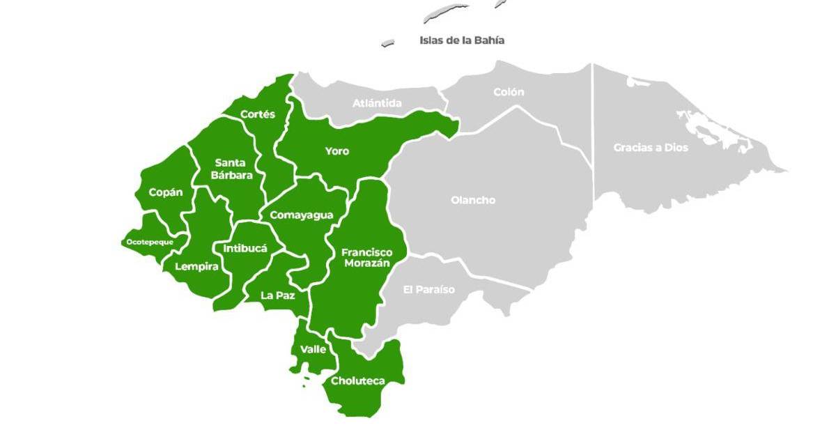 Los departamentos bajo alerta son: Copán, Santa Bárbara, Ocotepeque, Intibucá, Lempira, La Paz, Yoro, Cortés, Comayagua, Francisco Morazán, Choluteca y Valle.