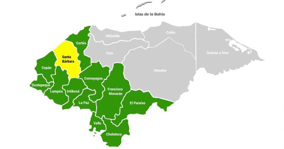 Los departamentos en alerta verde, también por 48 horas, son Comayagua, Francisco Morazán y La Paz (centro); Valle y Choluteca (sur); Intibucá, Copán, Ocotepeque y Lempira (oeste), Cortés (norte) y El Paraíso (este), señaló el organismo de protección civil.