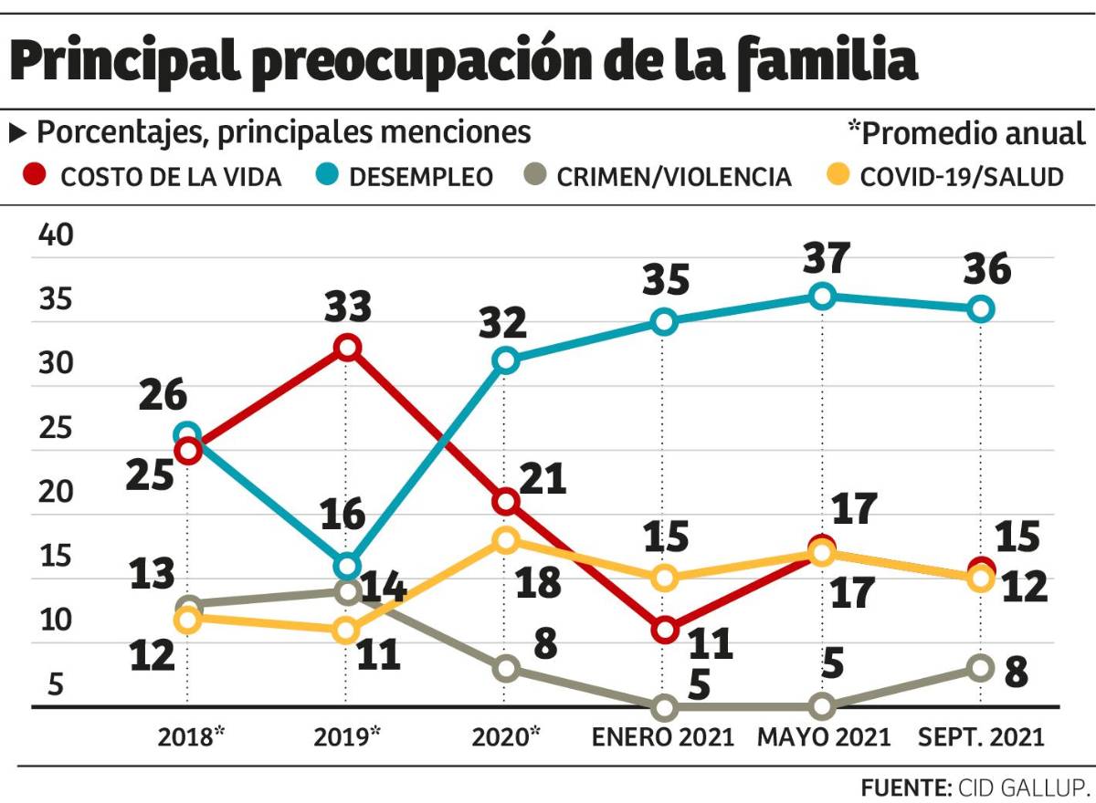 Mientras tanto en los hogares, la principal preocupación es el desempleo, donde algún miembro de la familia o el jefe del hogar no tienen trabajo.