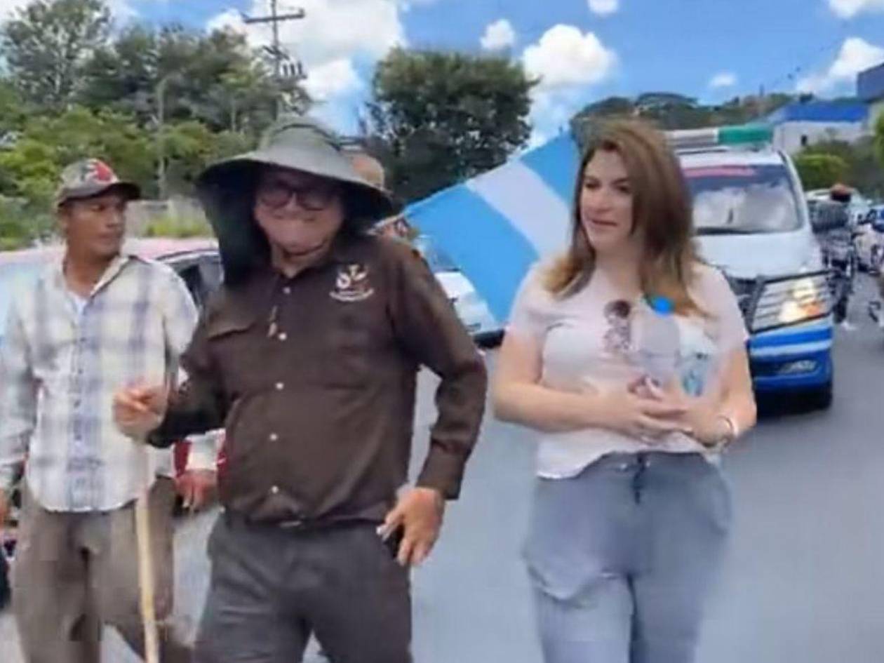 La presidenta del Consejo Nacional Electoral (CNE), Cossette López, recibió este domingo al padre Leopoldo Serrano en su llegada a Tegucigalpa, luego de que el religioso completara una intensa caminata de diez días que comenzó en el kilómetro 89 de la carretera de Occidente, en el sector de Valle Verde, Macuelizo, Santa Bárbara.