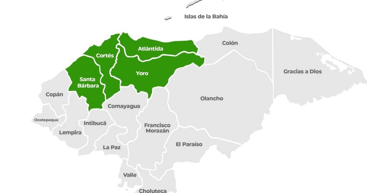 El nivel de alerta, que comenzó a regir desde las 6:00 pm del domingo 19 de marzo, aplica para los departamentos de Santa Bárbara, Cortés, Yoro y Atlántida.