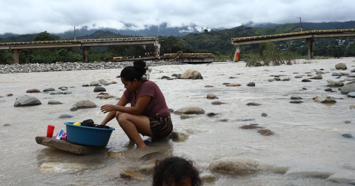 La joven María Martínez lavaba ayer en las aguas del río Cangrejal de La Ceiba, y a sus espaldas el imponente puente Saopín, testigo mudo de la furia de la tormenta Sara.