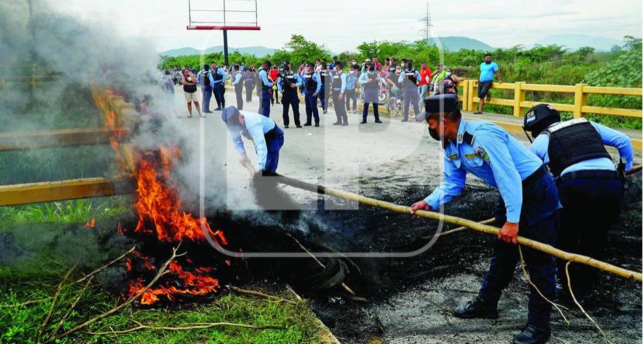 Ayer desde las 5:00 am, un grupo de vecinos de las colonias La Independencia, El Rosario, La Planeta, Céleo González, San Cristóbal y La Jerusalén de La Lima se tomaron la CA-13, en el puente Chotepe, como medida de presión para que ejecuten las obras de mitigación.