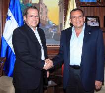 Concluida la reunión de ambos cancilleres, el Presidente Porfirio Lobo recibió en su despacho al canciller ecuatoriano.