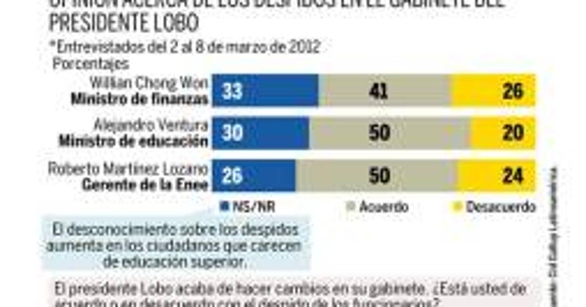 La mayoría de los entrevistados indica estar de acuerdo con los despidos que se han dado en el gabinete del presidente Porfirio Lobo Sosa; sin embargo, se pueden observar altos niveles de desconocimiento acerca del tema, entre la población.
