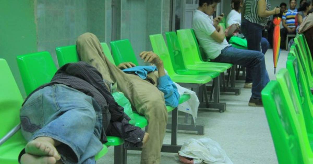 Las escenas son dramáticas en las bancas y áreas verdes del hospital.
