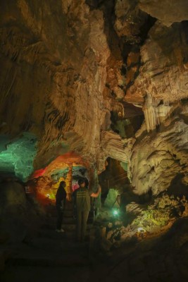 Los primeros 300 metros de ese mundo espeleológico se recorren en media hora. Hay gradas con pasamanos y un sistema de iluminación espectacular que resulta ideal para tomarse la foto de recuerdo.
