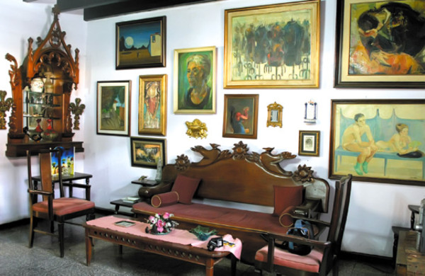 En las paredes de la sala principal cuelgan pinturas firmadas por Miguel Ángel Ruiz Matute, Mario Castillo, Armando Lara, Julio Visquerra, Benigno Gómez, Ezequiel Padilla Ayestas, entre otros que testifican la amistad.