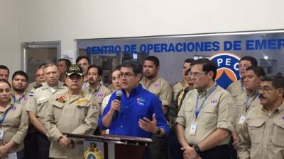 El mandatario compareció ayer ante los medios de comunicación presentes en la Comisión Permanente de Contingencias (Copeco).