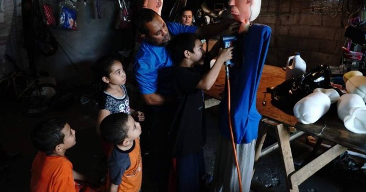 Él trabaja con su familia, sus cinco hijos y su esposa le ayudan desde la elaboración de las caras, el cuerpo, hasta vestir y pintar a los muñecos. Los materiales para la elaboración son esponja, madera y ropa vieja.