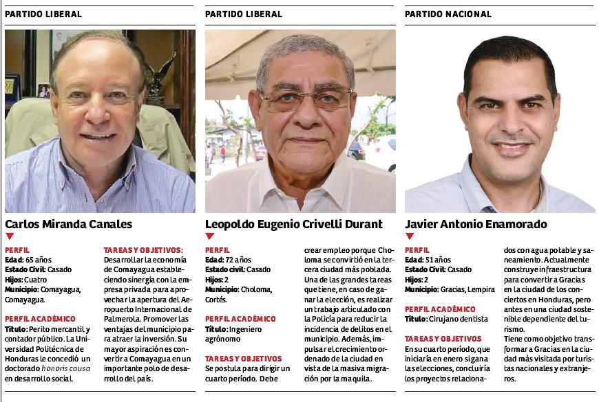 La figura emblemática de los aspirantes es Carlos Miranda Canales, alcalde de Comayagua. Si triunfa en las generales, por medio del Partido Liberal, en enero iniciará su séptimo período.