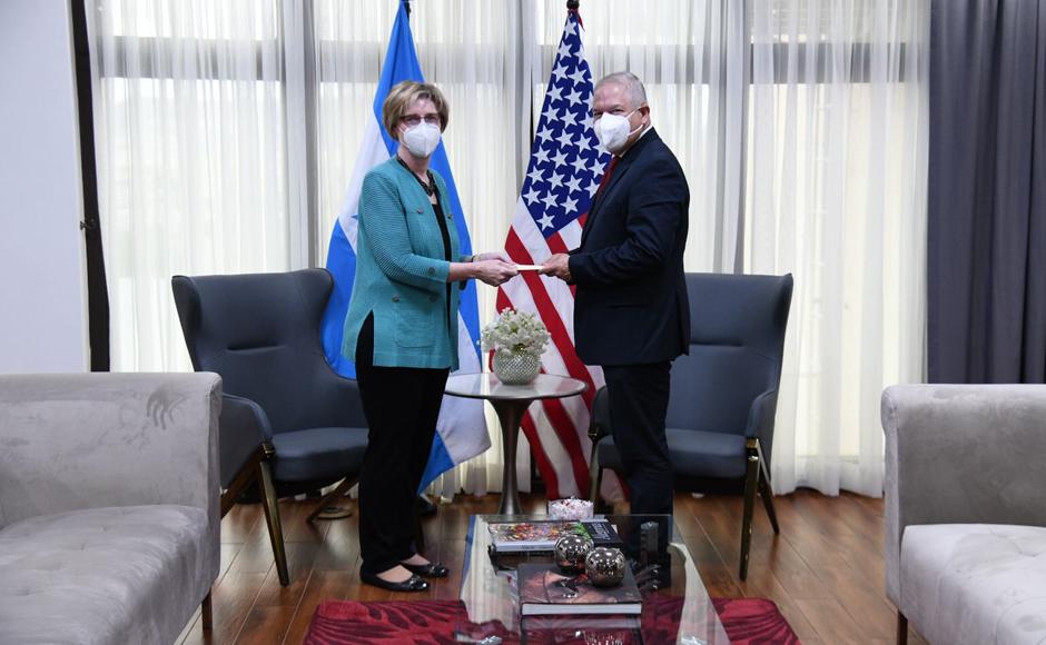 La nueva embajadora del Gobierno de Estados Unidos en Honduras, Laura Farnsworth Dogu, presentó este día ante el secretario de Relaciones Exteriores, Eduardo Enrique Reina, las copias de estilo que la acreditan como embajadora extraordinaria y plenipotenciaria de su nación ante la población del país.