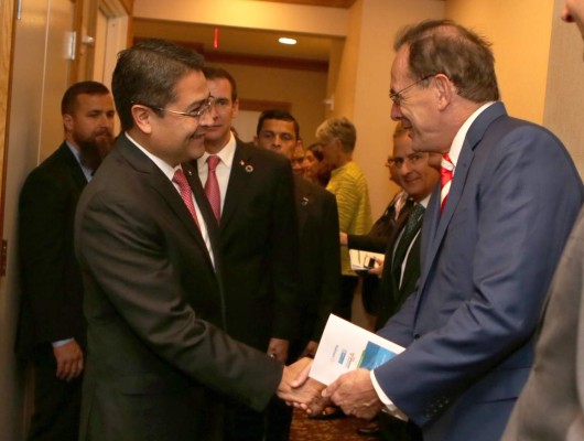Honduras hoy, y eso significa un país estable macroeconómicamente, con las mejores calificaciones de inversión que hemos tenido en la historia, un país más seguro, un país con reglas claras”. El presidente Hernández señaló que durante la reunión algunos ejecutivos le contaron a otros su experiencia de inversión en Honduras, lo que hizo la reunión más enriquecedora.