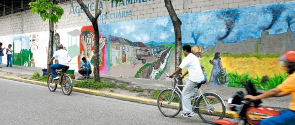 'San Pedro Sula' es el tema elegido para un mural pintado en la primera calle por un grupo de dieciocho artistas voluntarios de esta asociación.