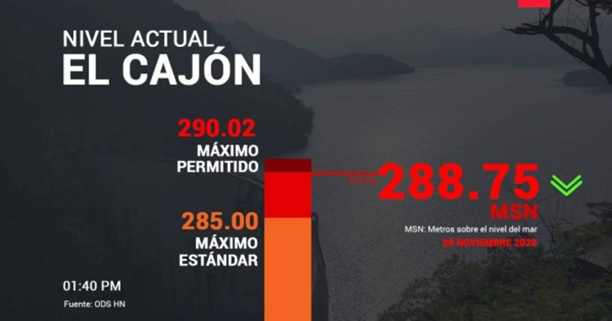 Según como era previsto por la situación climática dejada por la tormenta Iota, la Central Hidroeléctrica Francisco Morazán, conocida como El Cajón, sobrepasa el nivel máximo recomendado de retención de agua por metros sobre el nivel del mar (MSN).