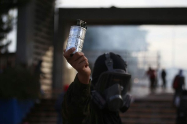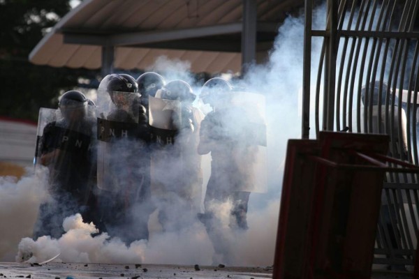 Agentes antimotines de la Policía Nacional llegaron hasta las afueras del recinto universitario para disipar la protestas y recuperar el paso de los vehículos, objetivo que lograron después de intercambiar piedras y gas lacrimógeno.