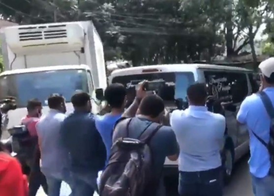 Medios de comunicación en el momento en que trasladan el cuerpo de Keyla Martínez hacia La Esperanza.