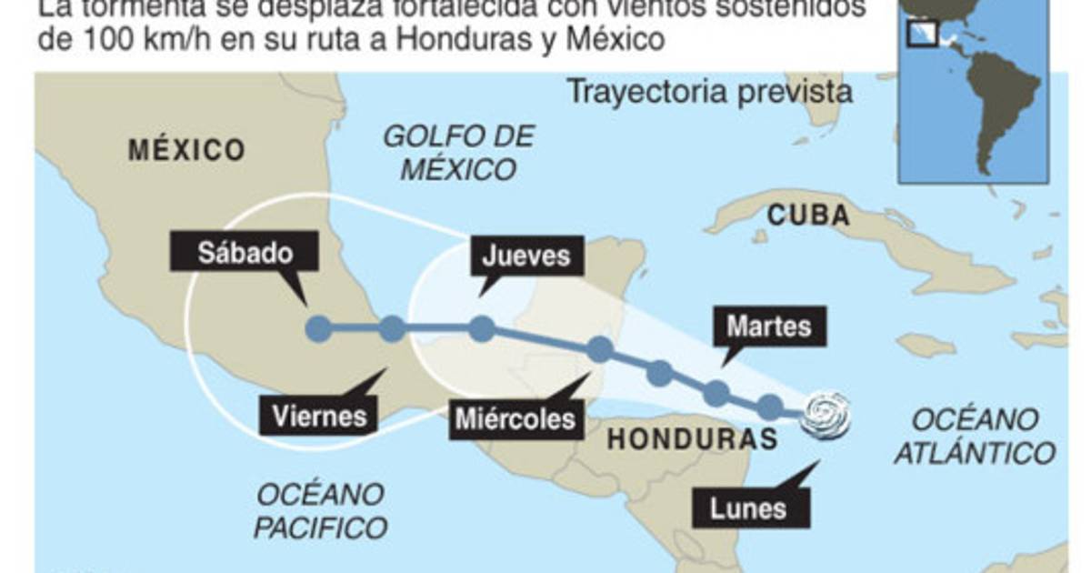 La tormenta a primeras horas del lunes se encontraba a unos 250 kilómetros de Cabo Gracias a Dios, avanzando a unos 19 kilómetros por hora, con ráfagas de viento de 85 kilómetros por hora y con un radio de acción de unos 150 kilómetros, dijo a la televisión local el secretario del Sistema Nacional de Prevención, Atención y Mitigación de Desastres de Nicaragua (Sinapred), Guillermo González.