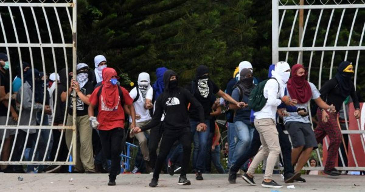 Un grupo de estudiantes de la Universidad Autónoma de Honduras (UNAH) y agentes de la Policía Nacional y militar protagonizan una batalla campal en las afueras del campus ubicado en Tegucigalpa.