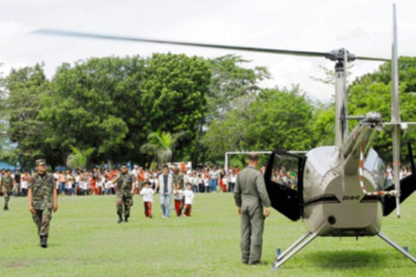 Lo mejor se vivió cuando los infantes advirtieron el paso de un helicóptero, lo que provocó muestras de regocijo. Todos dejaron de reventar las piñatas para observar cómo aquella enorme nave aterrizaba a poca distancia.