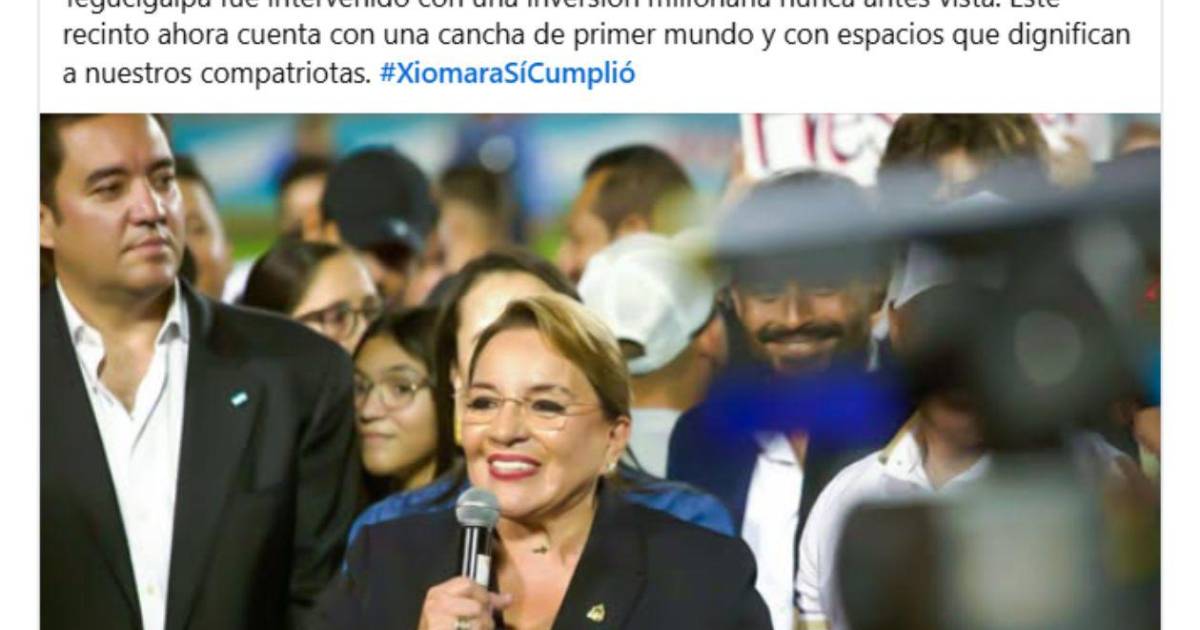 A las 8:32 de la mañana, la página de la antigua Secretaría de Prensa del Poder Ejecutivo publicó un mensaje destacando obras ejecutadas durante la gestión de Xiomara Castro de Zelaya, entre ellas la intervención del Estadio Nacional de Tegucigalpa, señalando una “inversión millonaria nunca antes vista” y cerrando con la etiqueta #XiomaraSíCumplió.
